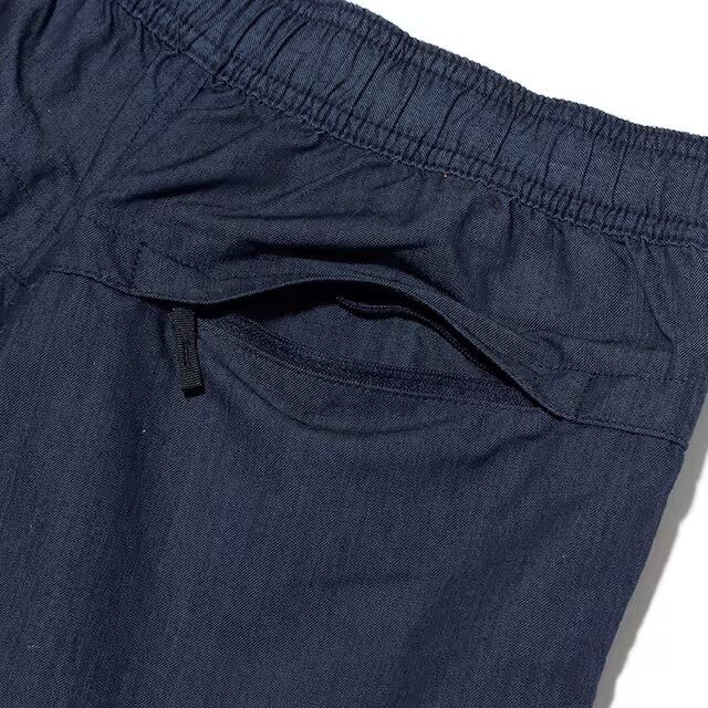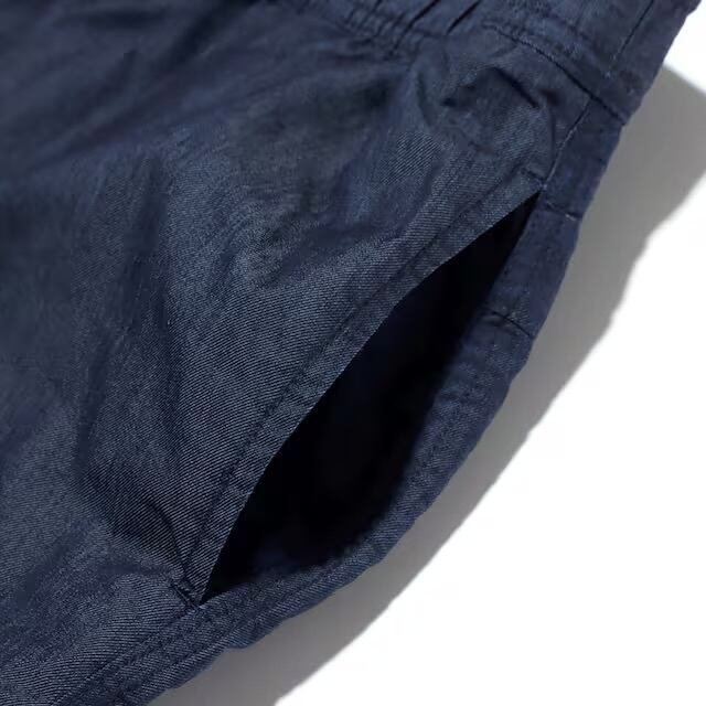 自分好みに育てることができる軽量ショーツパンツ。コットンと比較して耐摩耗性があり、軽く速乾性もあるリサイクルナイロンを生地に採用しています。ナイロン糸ですがインディゴロープ染色により糸の中心部が白く残っているので、インディゴ染め特有の色落ちによる経年変化を楽しむことができます。コンパクトに畳んで持ち運ぶことができ、替えのパンツとして、旅先などでも便利。ウエストはスピンドル仕様です。