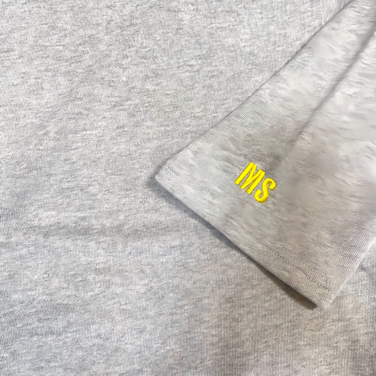 着回しの良い無地で左袖にはイエローでMSの刺繍、パイル仕立ての生地は肌触りも良く、COTTON 100% で一年を通して着用しやすくなってます。ユニセックスです。また前回の8分袖よりオーバーサイズになっております。